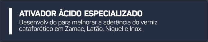 É um ativador químico especial de alta performance, desenvolvido para otimizar a aderência do verniz catafórico em diversos substratos, incluindo zamac, latão, níquel e inox. Com uma formulação avançada, o ACTIVE HP MC oferece uma solução eficiente para processos de eletrodeposição, especialmente após o uso de cobre ácido. Este produto inovador proporciona um microataque uniforme, garantindo um acabamento impecável sem alterar sua aparência.